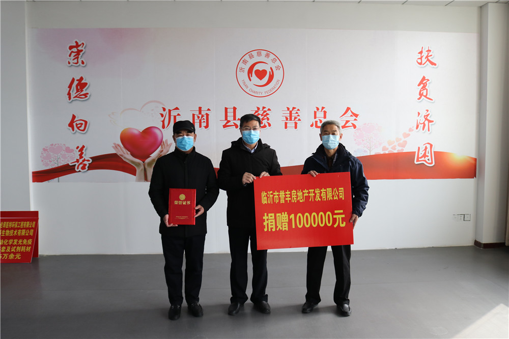 同时,为支持我县慈善事业,临沂宝盛置业有限公司捐赠10万元,临沂市誉丰房地产开发有限公司捐赠10万元。