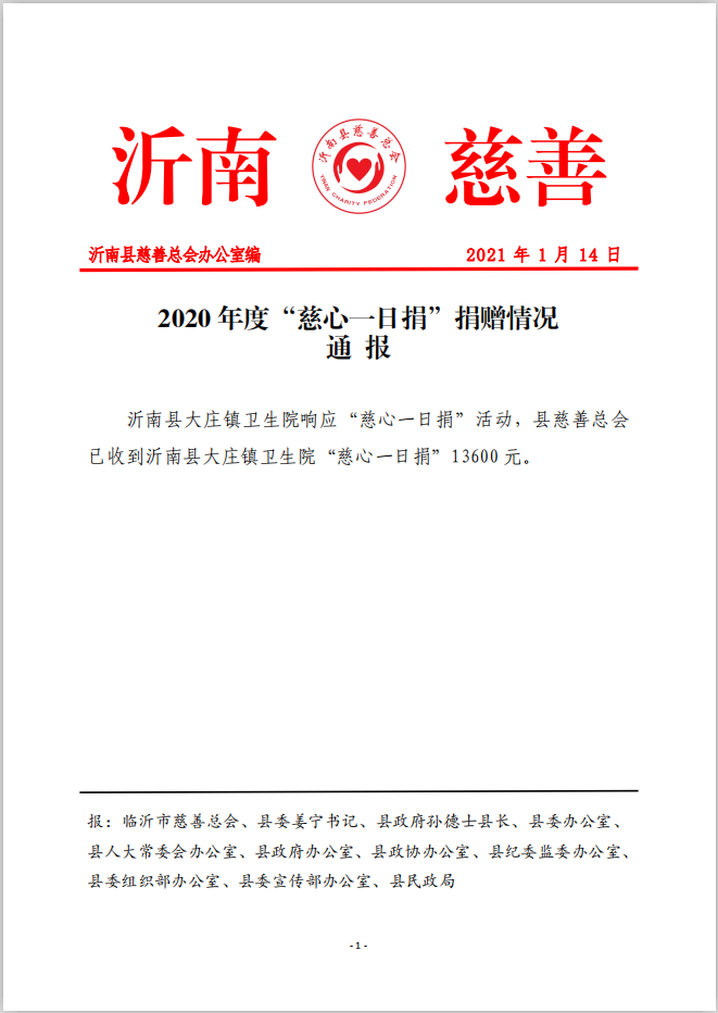 2020年“慈心一日捐”捐赠情况通报(十三)