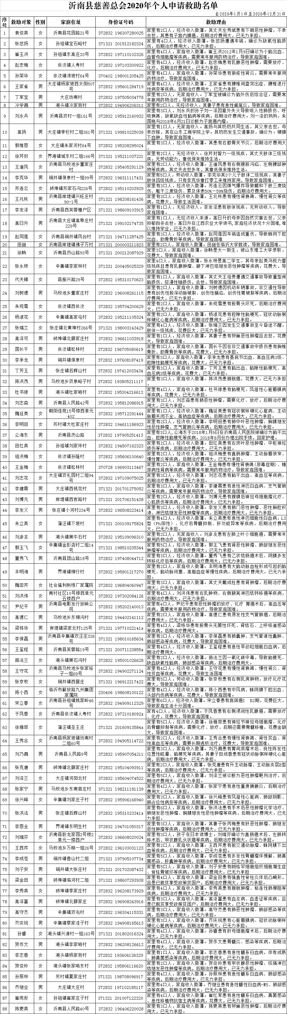 2020年个人申请救助名单